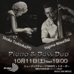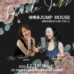 HOME 12/29(月)20:00-丹羽肇(b)月岡翔生子(p)配信Live vol.48 12/18(木)20:00-菅涼子(vo,fl)DUO@中洲JumpHouse 10/27(月)玉川健一郎(vo)@志免町とりこっこ 10/15(水)佐世保 FLAT FIVE 10/11(土)19:00-浄水通Music bar Bridge