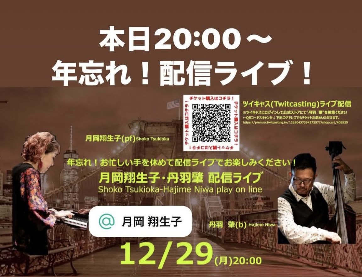 12/29(月)20:00-丹羽肇(b)月岡翔生子(p)配信Live vol.48