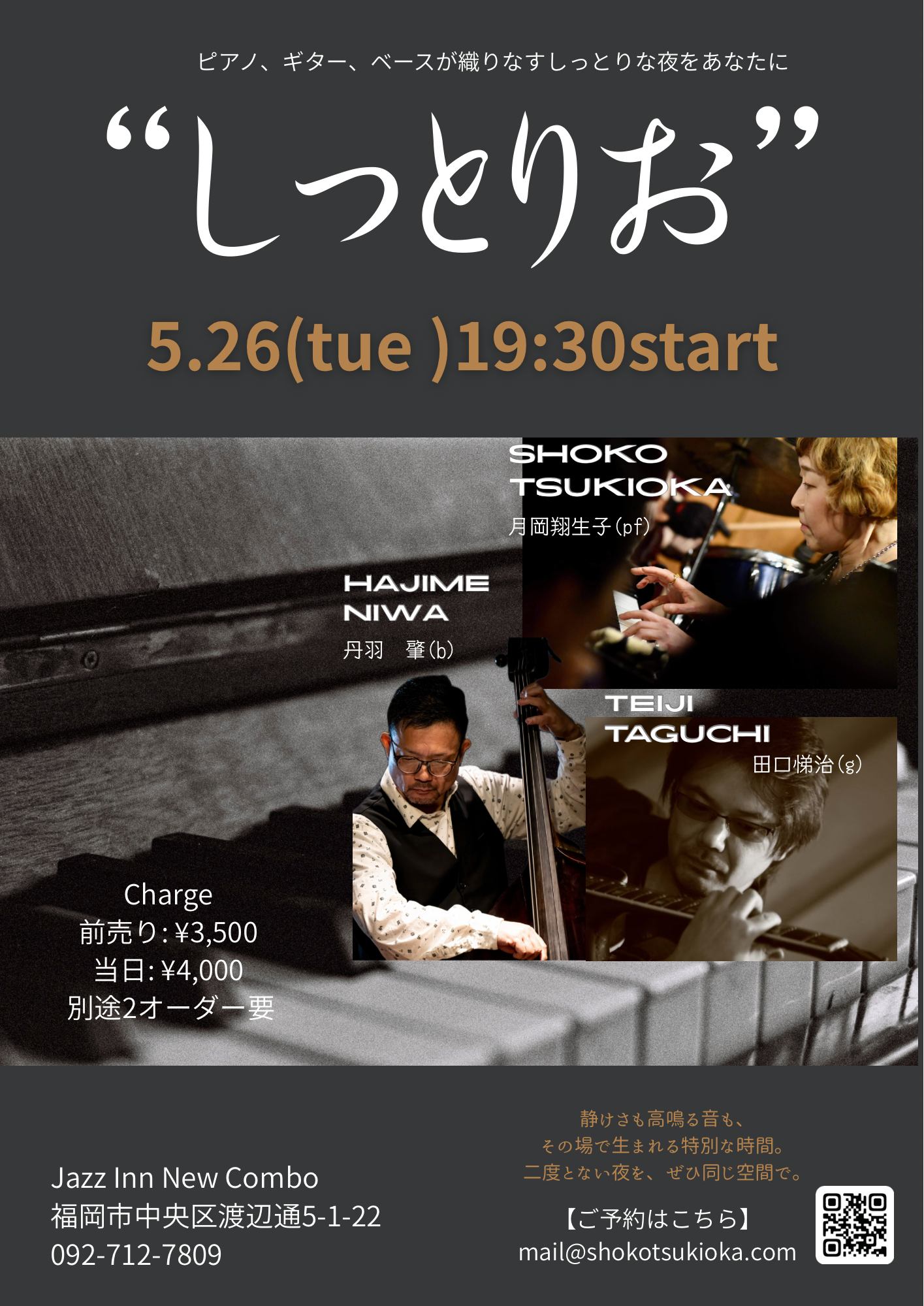 投稿日: 2026年3月31日2026年3月31日 投稿者: Shokopf5/26(火)しっとりお@福岡New COMBO 久しぶりに“しっとりお”開催します19:30スタートニューコンボにてお待ちしてます